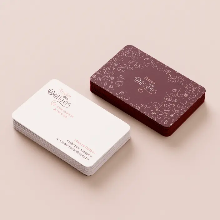 Conception de identité graphique d'un chocolatier, du logo jusqu’au processus d’impression des documents corporate, packaging, PLV, 2024. Un ton proche des gens, convivial, de confiance, de savoir-faire et d’authenticité, reflet de plaisirs et d’émotions partagées. Un savoir-faire artisanal. Une marque qui transmet la passion et la gourmandise.