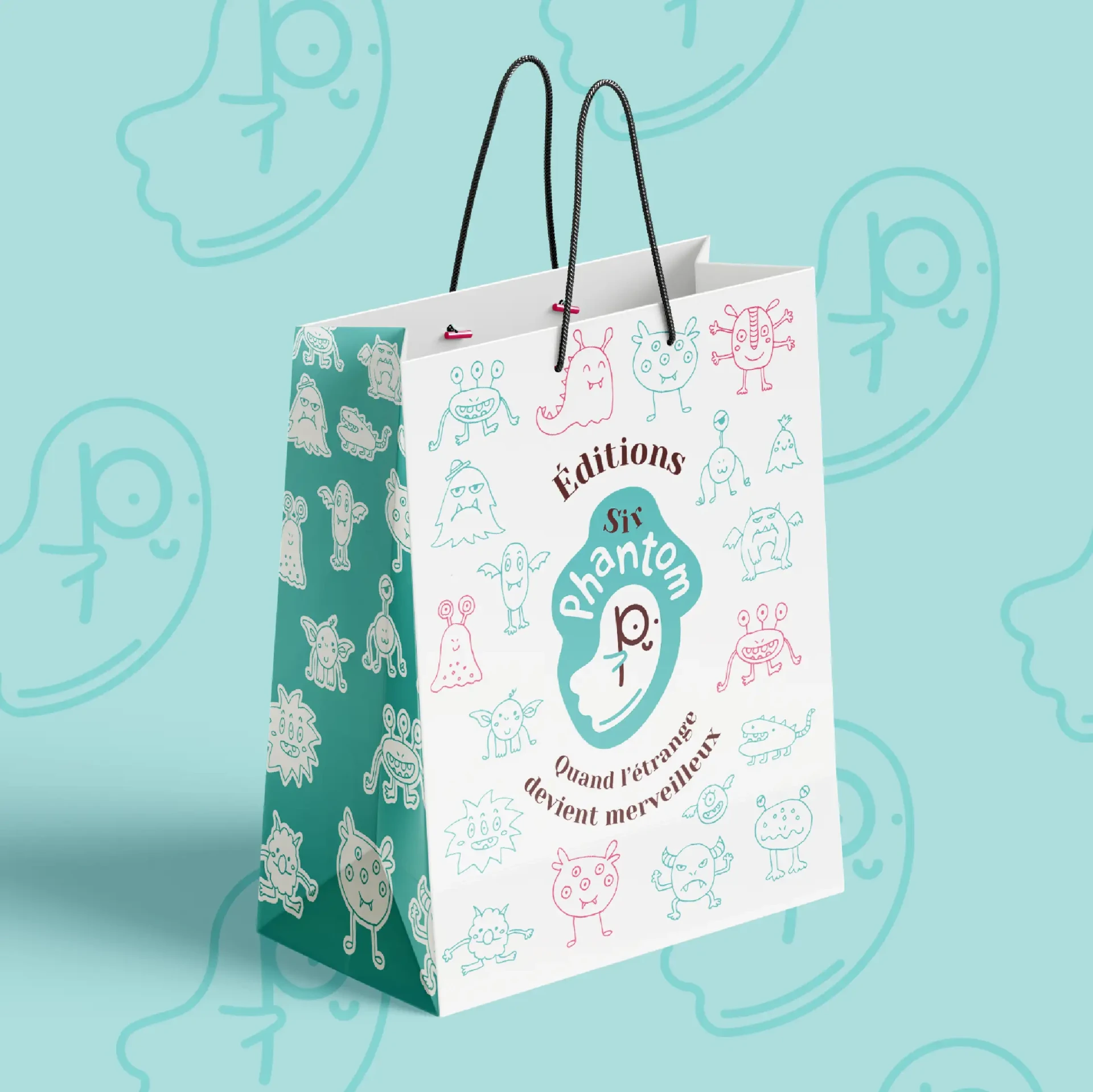 La direction artistique s’oriente vers un univers ludique et expressif. Le “p” de Phatom est détourné pour devenir le monocle du fantôme, apportant caractère et humour à l’identité.
